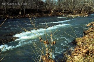 South Fork of Spring River This warm tributary of the Spring River begins near the town of Moko on the Arkansas/Missouri border in Fulton County. It flows about 40 miles through eastern Ozark hill country, pasture land, and oak-hickory forests. It is a gravel bottom stream with some silty areas that contains a good smallmouth bass and shadow bass population. Catfish are also stocked annually. There is an AG&FC access area (with boat ramp) in the town of Salem. Other access is afford by low water bridges on county roads and on private property. The best time to float is in the Spring when there is maximum flow. |